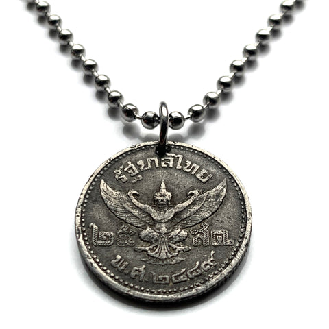 1946 Thailand Siam 25 Satang coin pendant necklace jewelry Garuda Phra Khrut Pha mythical creature vahana Vishnu Narayana Hindu god Buddhist Bangkok Samut Prakan Mueang Nonthaburi Udon Thani Hat Yai Wat Arun n002603