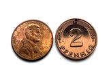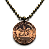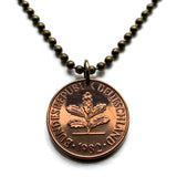 1982 Germany Deutschland 2 Pfennig coin pendant German oak seedling garden planting blossom tree plant Berlin Munich Stuttgart Hamburg Cologne Bonn Dortmund Bavaria n000431