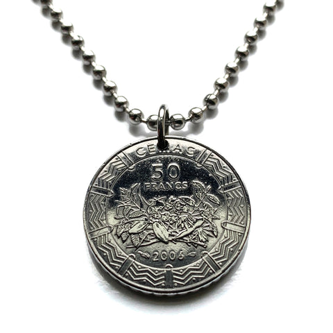 2006 Central African States 50 Francs coin pendant cacao cassava crops Cameroon Central African Republic Chad Equatorial Guinea Gabon Congo Yaoundé Bangui N'Djamena Libreville Brazzaville Douala Bafoussam Bamileke Kamtok N'Djamena Sahel Bateke n001801