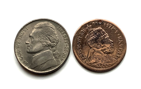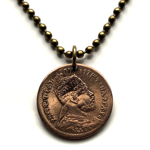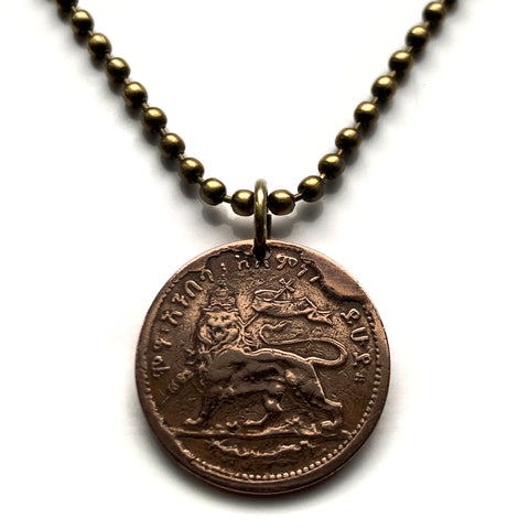 1903 Ethiopia 1/32 Birr coin pendant Lion of Judah king Menelik II Shewa Israelite Jewish tribe Rasta Solomonic dynasty Kebra Nagast n003962