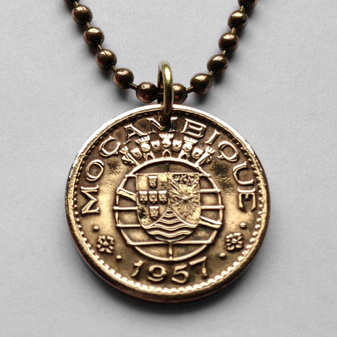 1960 Mozambique 10 Centavos coin pendant Mozambican Maputo Bantu Tsonga Tete Quelimane Lichinga Zambezia Sofala Gorongosa Marrabenta n002300