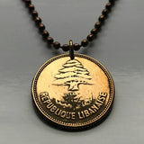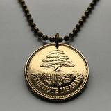 1952 Lebanon Liban 25 Piastres coin pendant Lebanese cedar tree Beirut Tripoli Aley Jounieh Anjar Bsharri Zahlé Sidon Byblos Tyre Nabatieh Badaro Baabda Batroun The Levant Middle East Phoenician Levantine arabic Beqaa Valley Cedars of God n001042