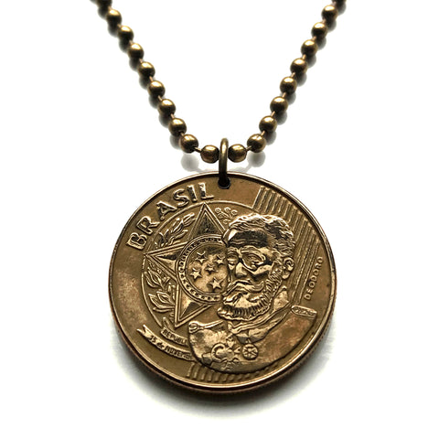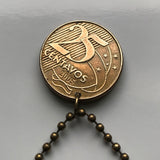 2003 Brazil 25 Centavos coin pendant necklace jewelry Deodoro Fonseca Brasão de Armas Cruzeiro do Sul Rio de Janeiro Brasília São Paulo Ipanema Copacabana Belo Horizonte Curitiba Recife Pernambuco Bahia n002508