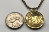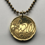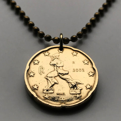 2002 Italy 20 Euro Cent coin pendant Unique Forms of Continuity in Space Futurist sculptor Umberto Boccioni art Museo del Novecento dell'Arengario Milan Lombardy Rome Florence Venice Verona Genoa Palermo Bologna Torino Napoli San Gimignano Siena n000670