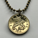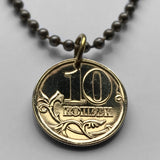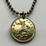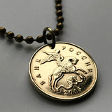 1999 Russia 10 Kopecks coin pendant Saint George on horseback dragon slayer Moscow Saint Petersburg Kazan Yekaterinburg Nizhny Novgorod Chelyabinsk Sochi Rus' Novosibirsk Volgograd Omsk Samara Tatars Siberia Rostov Cossacks Russian Peter the Great n000892