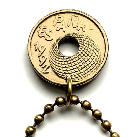 1992 España Spain 25 Pesetas coin pendant Sevilla Fortaleza Torre del Oro watchtower El Arenal Andalusia Guadalquivir Cartuja Island n002064