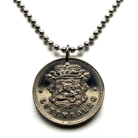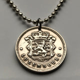1927 Luxembourg Letzeburg 25 Centimes coin pendant necklace jewelry Luxembourgish lion Esch-sur-Alzette Differdange Dudelange Wormeldange Grund Diekirch Schengen Pétange Rumelange Redange Bourscheid n002583