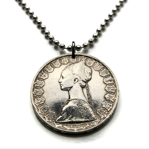 1958 Italy 500 Lire SILVER coin pendant Italian renaissance lady dress Medaglia di Cecilia Gonzaga Pisanello medal Antonio di Puccio Pisano International Gothic style Giotto Roma Milano Florence Venice Turin Bologna Verona Genoa Siena Perugia n003811