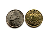 • demonetized {no longer in circulation} polished Copper-aluminum coin