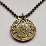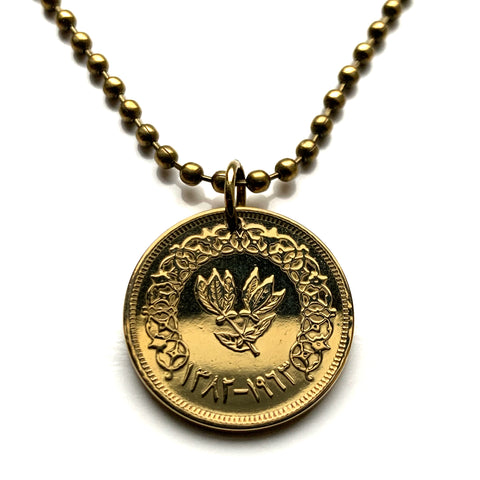 1963 North Yemen 1 Buqshah coin pendant Sanaa Aden Taiz Al Hudaydah Ibb Dhamar Mukalla Seiyun Zinjibar Sayyan Ash Shihr Sahar Sabaeans Kingdom of Sheba Mocha eagle of Saladin Marib Dam Zabid Hajjah Bajil Sabaic South Arabia Himyarite Mutawakkilite n001277