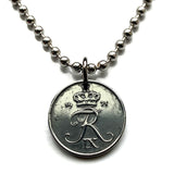 Denmark Danmark coin pendant necklace jewelry Danish royal crown initial R Copenhagen Aarhus Odense Aalborg Esbjerg Danes Randers Kolding Horsens Funen Jutland Vikings Scandinavian Nordic Roskilde Syddanmark Aabenraa Hillerød Zealand Vendsyssel Faroese Amager Jelling stones Vejle Slotsholmen Dannebrog Tivoli Gardens Old Norse Langelinie pier Den lille Havfrue Helsingør Kronborg castle Hammeren Bornholm Egeskov Castle Great Belt Bridge Bakken Djursland Skuldelev ships longship skeid Augustenborg Als island Baltic Sea