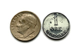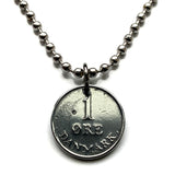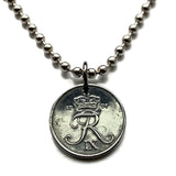 1971 Denmark Danmark 1 Ore coin pendant Danish crown initial R Copenhagen Aarhus Odense Aalborg Esbjerg Danes Randers Kolding Horsens Funen Jutland Viking Scandinavia Nordic Roskilde Syddanmark Aabenraa Hillerød Zealand Vendsyssel Faroese Amager n003778