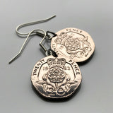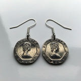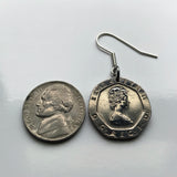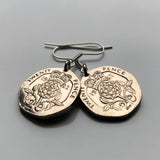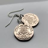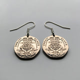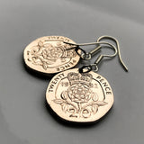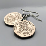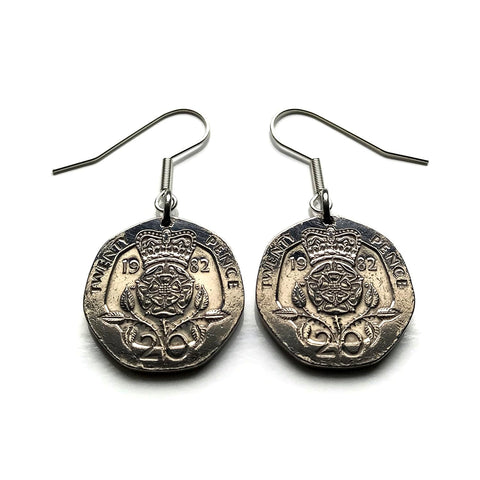 1988 England United Kingdom Great Britain UK 20 Pence coin earrings jewelry English crown Tudor Rose Lancaster York Somerset Bath Taunton War of the Roses British London Manchester Sheffield Liverpool Leeds e000035