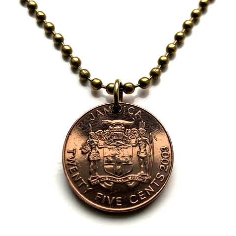 2003 Jamaica 25 Cent coin pendant Jamaican Patois crocodile alligator pineapples Montego Bay Kingston West Indies caribbean necklace n002038