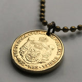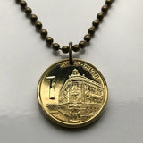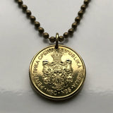 2008 Serbia Srbija 1 Dinar coin pendant Serbian cross double-headed eagle crown Gračanica monastery Belgrade Novi Sad Niš Kragujevac Subotica Pančevo Novi Pazar Čačak Kruševac Zrenjanin Kraljevo Yugoslavia Nemanjić dynasty Golubac Palilula n002663