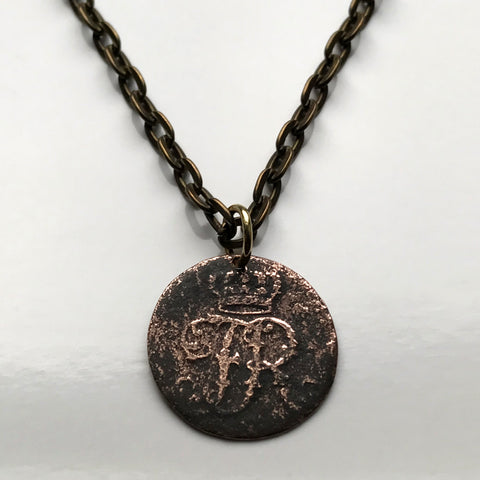 antique! 1750s Germany States Prussia 1 Pfennig coin pendant German jewelry initial F R Deutschland Berlin Brandenburg Frankfurt Hanover Königsberg Hohenzollern Castle Danzig Munster Kassel Cologne Dusseldorf Dortmund Essen Munich Leipzig Bremen n003547