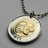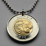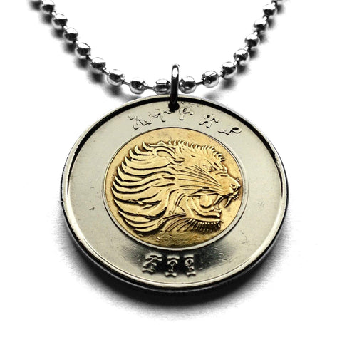 Ethiopia 1 Birr coin pendant necklace jewelry African lion of Judah Israelite tribe Rasta Solomonic dynasty Jewish Kebra Nagast Tigrinya Afar Ethiopian n001620