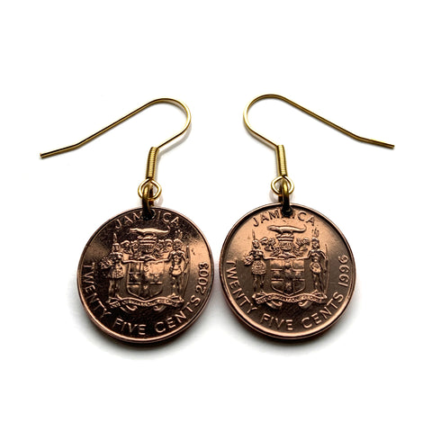 Jamaica 25 Cents coin earrings crocodile alligator pineapples Kingston Portmore Montego Bay Port Royal Spanish Town Ocho Ríos Patwah May Pen West Indies Jamaican Patois caribbean Marcus Garvey e000667