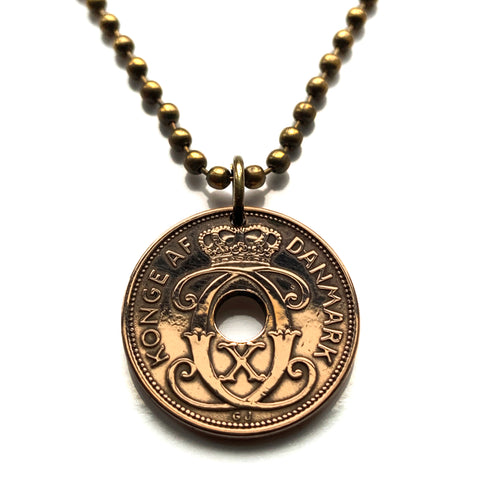 Denmark Danmark Danish 2 Ore coin pendant initial C X Copenhagen Aarhus Odense Aalborg Danes Scandinavian Nordic Esbjerg Danskere Randers Kolding Zealand Funen Faroese Jutland Vendsyssel Thy n000127