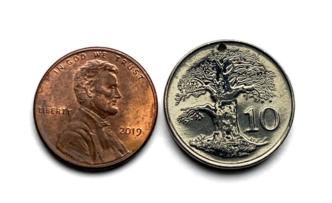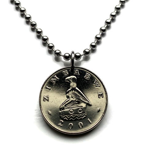 2001 Zimbabwe Rhodesia Nyasaland 10 Cents coin pendant necklace jewelry African Baobab tree soapstone bird carving Victoria Falls African Shona Bantu Chitungwiza Matobo n000075