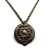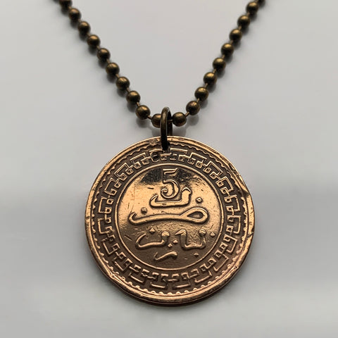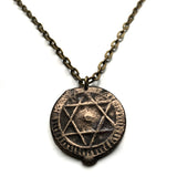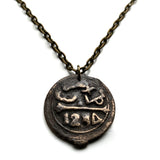 1868 Morocco 4 Falus coin pendant Seal of Solomon hexagram Fez Salé Meknes Oujda 6 pointed star Maghrebis Abjad Moors Islamic n003045