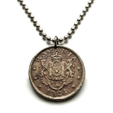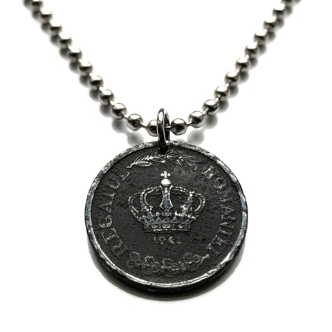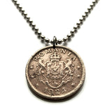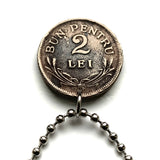 1924 Romania 2 Leu coin pendant Romanian crown lions eagle Bucharest Cluj-Napoca Iasi Constanta Wallachia Moldavia Timisoara Transylvania Bran Vlad Dracula's Castle Sibiu Brasov Peles Castle Roman Dacia Michael the Brave Vlachs Craiova Galati n001226