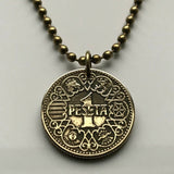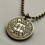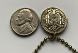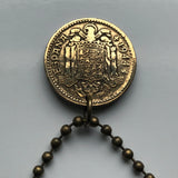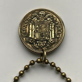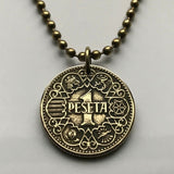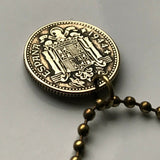1944 Spain España Peseta coin pendant necklace jewelry Spanish crown World War 2 era Madrid Barcelona Sevilla Malaga Toledo Asturias Granada Catalan Castile Leon Aragon Navarre Valencia Bilbao Zaragoza Coruña Cuenca n000637