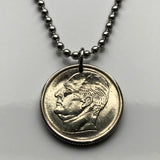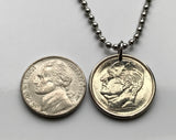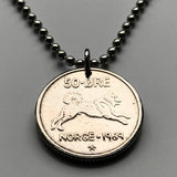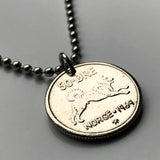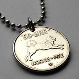 Norway Norge 50 Ore coin pendant Norwegian Elkhound dog husky Spitz type Moose hunting dog man’s best friend pet Oslo Bergen Stavanger Sandnes Trondheim Drammen Fredrikstad Sarpsborg Porsgrunn Skien Alesund Norsemen Vikings Bokmal Nynorsk n000249