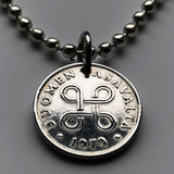 1976 Finland Suomi 1 Penni coin pendant Finnish Saint Hannes cross hannunvaakuna Helsinki Looped square Finnic Uusimaa Pirkanmaa Jyväskylä valknute Saint John's Arms sankthanskors Apple command key n002474