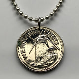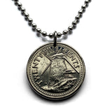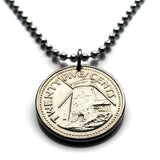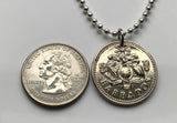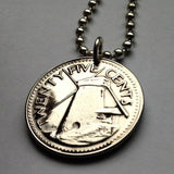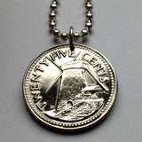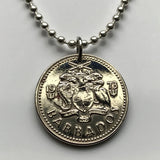 1987 Barbados 25 Cents coin pendant Barbadian Bajan jewelry Morgan Lewis Windmill trident drietand dolphin fish pelican beach Bridgetown caribbean Creole Caribbees West Indies Crop Over festival Errol Barrow Grand Kadooment Day Bimshire n001075