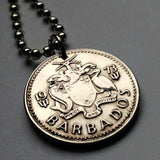 Barbados coin pendant necklace Barbadian Bajan jewelry Morgan Lewis Windmill trident drietand dolphin fish pelican beach Bridgetown caribbean Creole  Caribbees West Indies Crop Over festival Errol Barrow Grand Kadooment Day Bimshire Trident of Poseidon