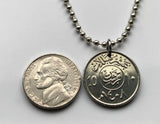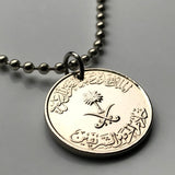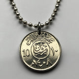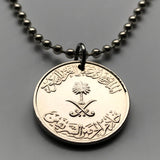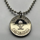 1988 Saudi Arabia 10 Halala coin pendant Arab crossed sword Mecca mosque Riyadh Arab Middle East Ibn Saud 'Asir Region palm trees n003059