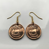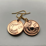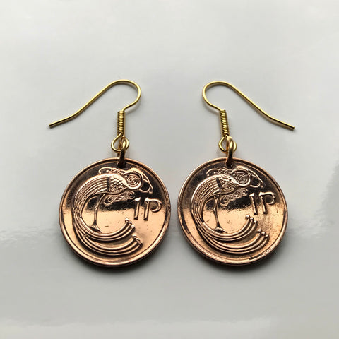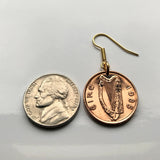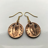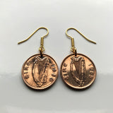 Ireland Éire 1 Penny coin earrings fashion jewelry Book of Kells Irish bird harp Cláirseach Dublin Cork Gospel Book Celtic manuscript Limerick Waterford Gartan Icovellavna Galway Icovellavna dangle and drop e000333