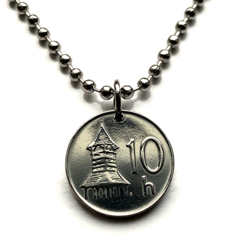 1993 Slovakia Slovensko 10 Halierov coin pendant Carpathian wooden belfry church Vlkolinec Kozuchovce Kosice Bratislava Presov Nitra n003909