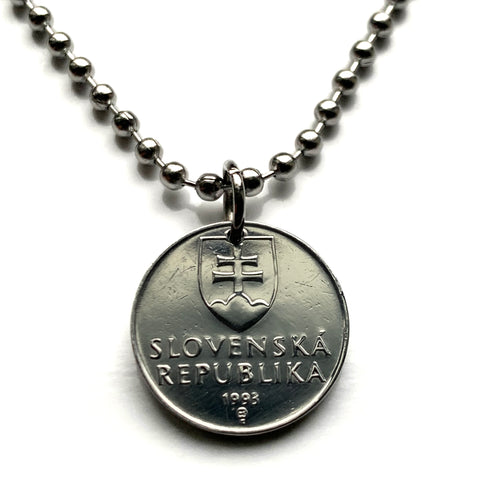 Slovakia Slovensko coin pendant necklace Slovak jewelry Carpathian wooden belfry church Vlkolinec Kozuchovce Kosice double cross shield High Tatras Andrej Hlinka Catholic priest Bratislava Presov Zilina Nitra Banská Bystrica Trnava Trencin Martin