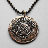 1922 Nepal 2 Paisa coin pendant Nepali Kukri Khukuri knife sword Gurkha blade trident Himalayas Mount Everest Kathmandu Biswakarma Kami Assam Sikkim Darjeeling Khas Arya Chhetri Bahun Rana Pokhara Bharatpur Lalitpur Biratnagar Devanagari Brahmi n001681
