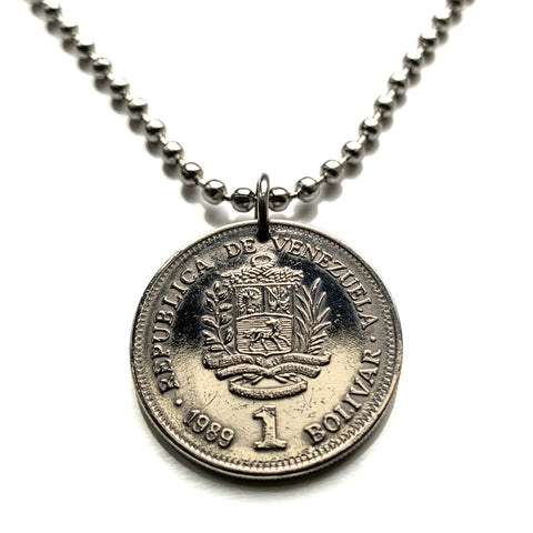 1989 Venezuela 1 Bolivar coin pendant necklace jewelry white horse Palomo Caracas Simón Bolívar Maracaibo Valencia pendant Barquisimeto Ciudad Guayana Maturín Barcelona Maracay Cumaná Barinas Miranda San Cristóbal n001101