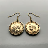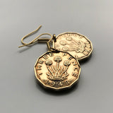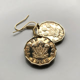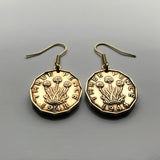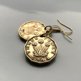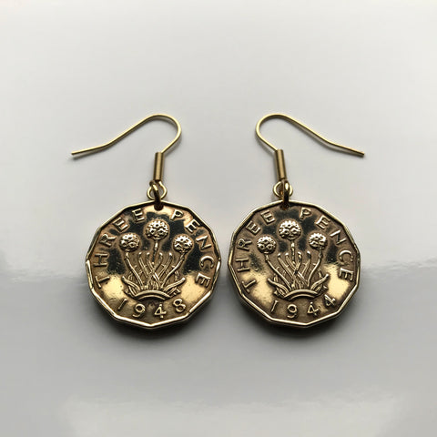 United Kingdom Great Britain 3 Pence 3 headed thrift plant coin earrings jewelry British flower England Scotland Wales Northern Ireland London Edinburgh Cardiff Belfast Manchester Liverpool Leeds World War 2 era e000074