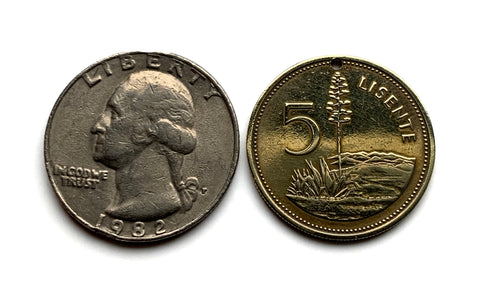 1979 Lesotho 5 Lisente coin pendant pine tree Moshoeshoe II Maseru Maloti Mountains Sotho people South Africa Berea Leribe Mafeteng n003595