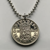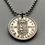 1960 United Kingdom England 1 Shilling coin pendant English shield 3 lions London Southampton British Nottingham Sheffield Great Britain Yorkshire n000164