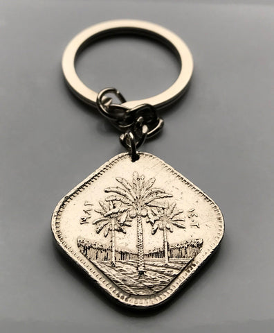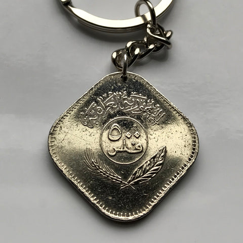 1982 Iraq 500 Fils coin pendant date palm tree Baghdad Mosul Basra Erbil Kirkuk Eyraca Arabica Middle East Tigris Euphrates Mesopotamia Sumerian Akkadian Empire Assyrian Kurdish Uruk Warka Sawad n002825