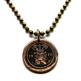 1860 Indonesia Netherlands Dutch East Indies 1/2 Cent coin pendant lion Jakarta Surabaya Bandung Medan Bekasi Palembang Tangerang Sundaland Java Prambanan Borobudur Toraja Bali Sunda Islands Bhinneka Tunggal Minangkabau people Suku Minang Surabaya n003781