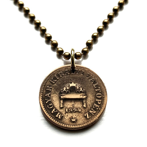 1895 Hungría Magyars 2 Filler moneda colgante collar joyería Húngara Santa Corona de San Esteban Szent Korona Budapest Debrecen Szeged Miskolc Pécs Győr Gellért Hill Nyíregyháza Jászság Fejér Hajdú-Bihar n000889