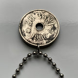 1905 Rumania 20 Bani colgante de moneda Corona rumana Bucarest Cluj-Napoca Iasi Constanta Valaquia Moldavia Timisoara Transilvania Castillo de Bran Vlad Drácula Sibiu Brasov Castillo de Peles Dacia romana Miguel el Valiente Valacos Craiova Galati n003684