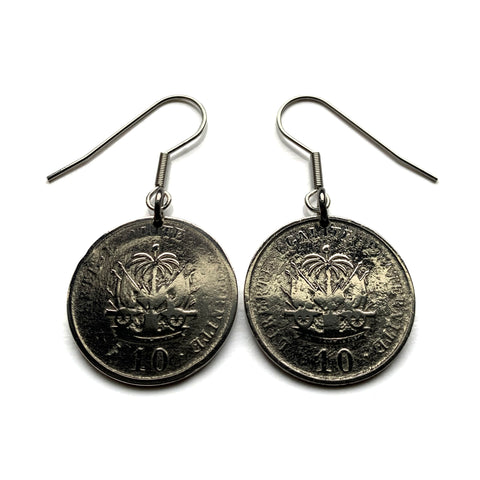 1906 Haiti 10 Cent coin earrings Haitian flags cannons palm trees Port-au-Prince Cap-Haïtien Carrefour Delmas Pétion-Ville Port-de-Paix Croix des Bouquets Jacmel Léogâne Les Cayes Citadelle Laferrière Sans-Souci Palace Minot Artibonite Gonaïves e000646