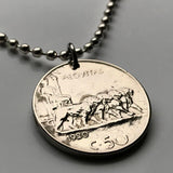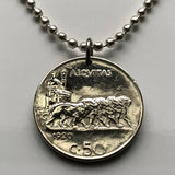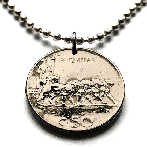 1920 Italy 50 Centesimi coin pendant Italian chariot lions Roma Milano Florence Napoli Siena Perugia Modena Capri Parma San Gimignano Lecce Polignare a Mare Caserta Positano Lazio Assisi Sorrento Salerno Apulia Ragusa Mantua Urbino Bari Campobasso n000561