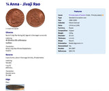 Parte posterior: Busto de Jivaji Rao mirando hacia la izquierda, la leyenda en devanagari lo rodea.
