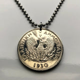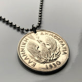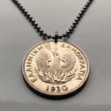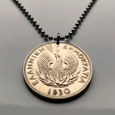 Moneda colgante de 5 dracmas de Grecia de 1930, ave fénix griega, Atenas, Rodas, Santorini, Tesalónica, Míkonos, Esparta, Creta, El Pireo, Larisa, Corfú, Delfos, Irakleion, mitología, Kallithea, Acarnes, águila n.º 003407