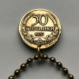Colgante de moneda de 50 Stotinki de Bulgaria de 1937 con corona de león búlgara de Sofía, Plovdiv, Varna, Burgas, Ruse, eslava, cirílica, turca, romaní, collar n.º 003154