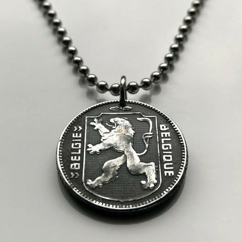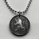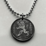 1944 Bélgica 1 Franco moneda colgante collar joyería Segunda Guerra Mundial Ocupación nazi alemana León belga Bruselas Brujas Amberes Gante Lieja Limburgo Bilstain Valonia Namur Lovaina Charleroi Mechelen Flandes Flamenco Deurne Ostende Dinant n001143